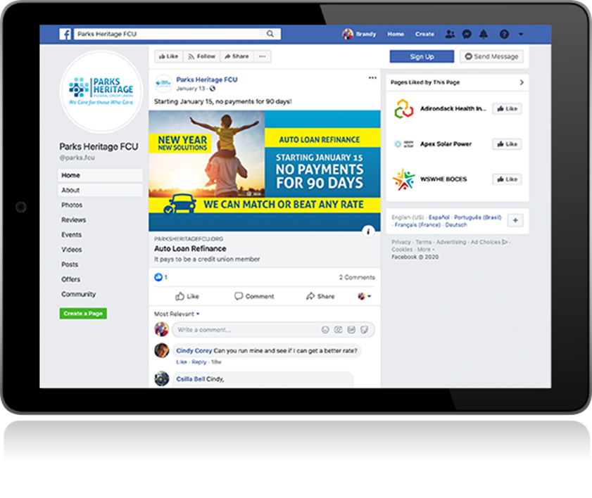Vibrant’s work with Parks Heritage is ongoing, helping sustain member engagement through scheduled topical social media posts. Through regular content, Parks Heritage ensures that members are up-to-date on relevant financial information, and that the credit union’s visibility in the community is increased.